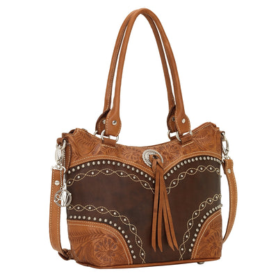 American West Cow Town Large Zip Top Convertible Satchel with Conceal Carry Pocket on Back