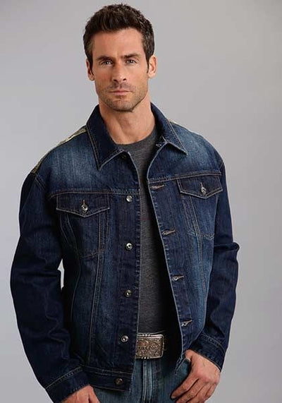 Mens Holiday Camo Canvas Denim Jacket 2XL Blue