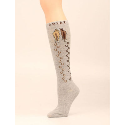 Ariat Horse Head Crew Sock Grey