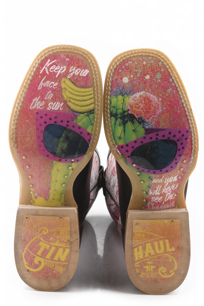 Tin Haul Ladies Square Toe Boots - Pinktalicious with Cactus Shades Sole