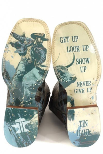 Tin Haul Mens Never Give Up Square Toe Boots