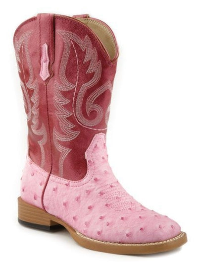 Roper Kids Ostrich Print Sq Toe Boots 1 Pnk