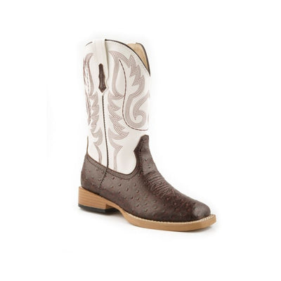 Roper Kids Sq Toe 9in Faux Ostrich Brown Boots
