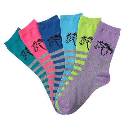 Lila Blakeslee Linear Horse Striped Crew Socks