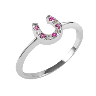 Kelly Herd Red and Clear Horseshoe Ring