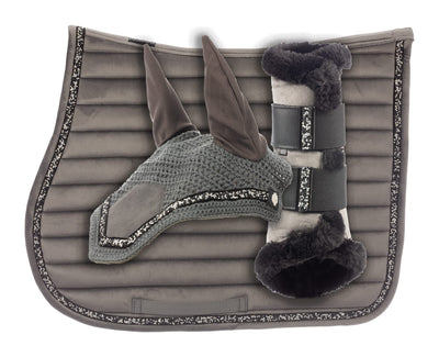 Equine Couture Fly Bonnet wSlv Lurex Cob Blk/Wht