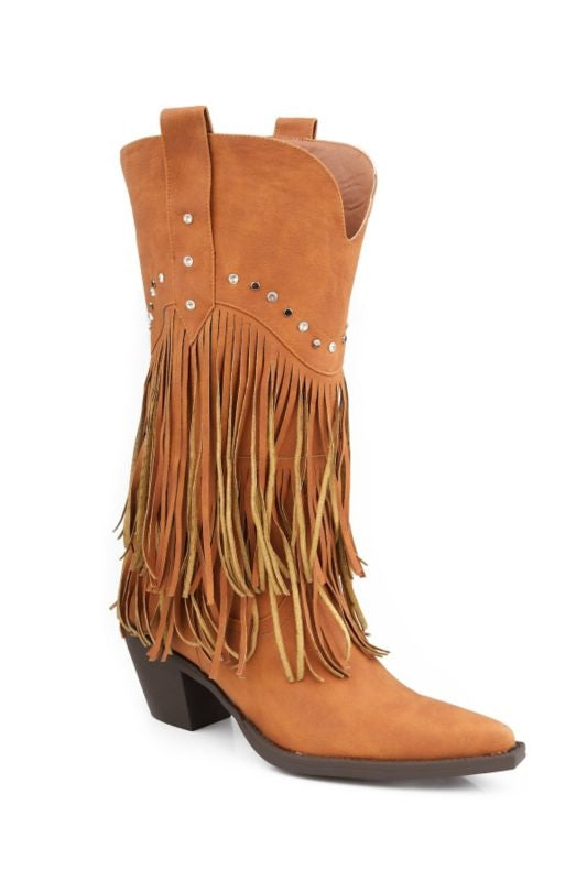 Roper Ladies Snip Toe 12in Fringe Brown Boots