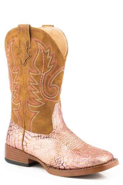 Roper Kids Glitz Square Toe Pink Gold Boots