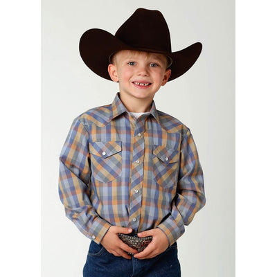 Roper Boys Indigo Trail Shirt SM Bluesy Plaid