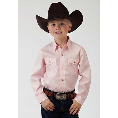 Roper Boys Poplin LS Variegated Snap Shirt LG Pink