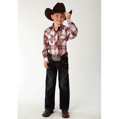 Roper Boys Plaid Snap Shirt XS Brown/Red Plaid