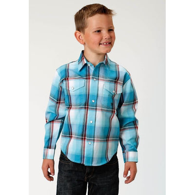 Roper Boys Performance Western Shirt - Lagoon Ombre Plaid