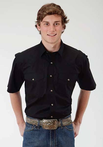 Roper Mens Solid Poplin Snap Shirt Lg Blk