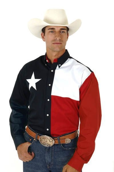 Roper Mens Texas Pieced Flag Button Shirt Lg Nat