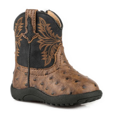 Roper Cowbabies Infant Brown Faux Ostrich/Green Leather Boots