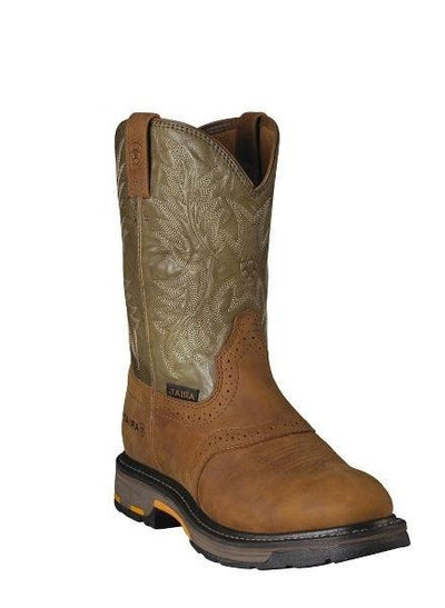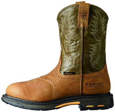 Ariat Mens Workhog Composite Toe Waterproof Boots - Aged Bark/Army Green