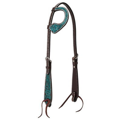 Weaver Turq Cross Carved Turq Flwr OneEar Headstal