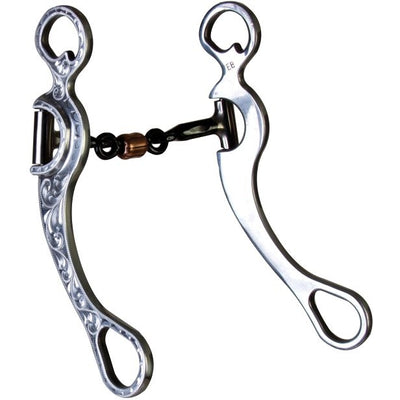 Order the Western SS Low Port Futurity Bit for an antique stainless steel curb bit that does not bend in all directions compared to a snaffle bit. This bit has a center cylinder that allows either side to turn clockwise or counterclockwise. The best part about this product is that it’s made in the USA and is the best selling product among our customers.