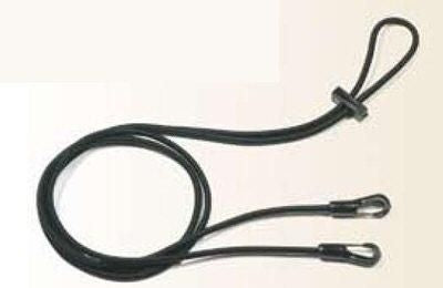 The Mustang Cowboy String Training Fork is made from black braided poly string with brass plated rings and a bolt snap cinch connector. The fork is adjustable and helps to develop and maintain proper head carriage while discouraging head tossing. This product is a standard piece of training equipment for most western discipline trainers.