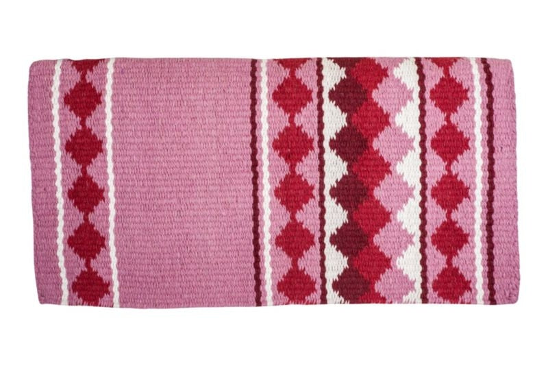 Western saddle blankets are an easy and effective method for relieving weight and pressure from your horse's back. Navajo saddle blankets help add a little color, pop, and style to your overall riding tack. Help make your horse a little more comfortable during your next ride with a good quality wool saddle blanket.