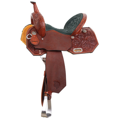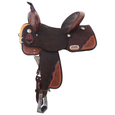 King Mini Full Carved Barrel Saddle Pkg 8 Chestnut